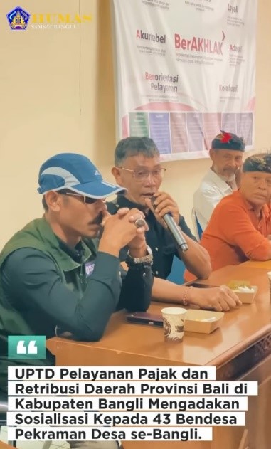 Melalui sosialisasi ini, diharapkan para Bendesa Pekraman dapat berperan aktif dalam menyampaikan informasi kepada masyarakat di wilayah masing-masing, sehingga tercipta peningkatan kesadaran dan kepatuhan masyarakat dalam memenuhi kewajiban Pajak Kendaraan Bermotor di Provinsi Bali.