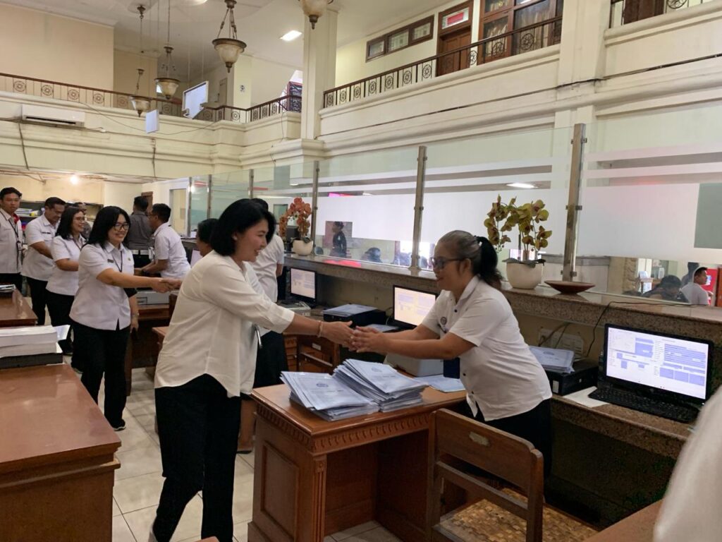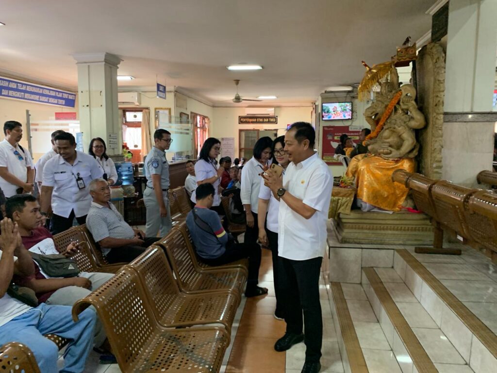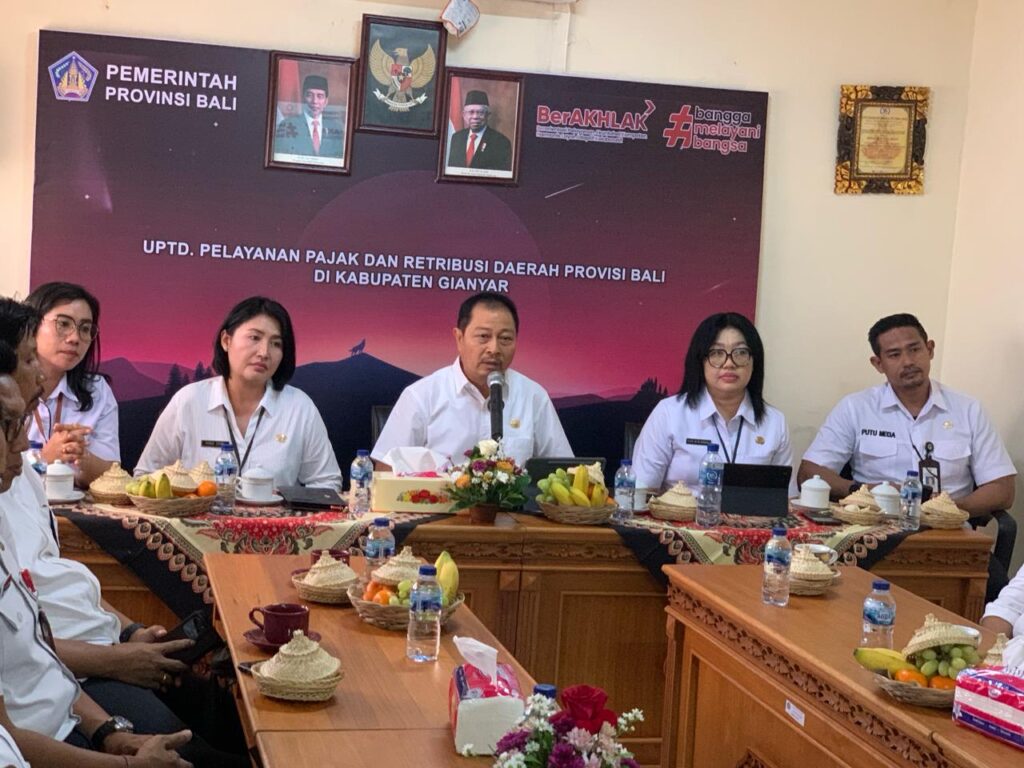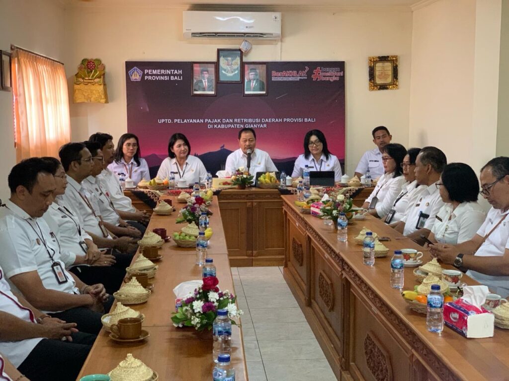 Kepala Badan Pendapatan Daerah Provinsi Bali kembali melaksanakan kunjungan kerja di UPTD PPRD di Kabupaten Gianyar dan Bangli, Kedatangan Kabapenda bersama tim kali ini di terima langsung oleh pejabat Kepala Substansi Tata Usaha, Kepala Substansi Pelayanan dan staf di lingkungan UPTD Kabupaten Gianyar, Kabapenda langsung menuju unit pelayanan samsat memantau secara langsung proses layanan samsat yang berada di lingkungan kantor samsat setempat, melihat loket-loket pelayanan serta pengesahan STNK dengan fasilitas pendukung samsat di sekitarnya, beliau juga menyempatkan diri berdialog langsung dengan WP yg sedang melaksakan kewajibannya bayar pajak, staf ASN maupun Non ASN yg sedang bertugas sembari memberikan semangat moril, dan motifasi agar tetap bersemangat dalam menjalankan tugas, kunjungan kerja ini di laksanakan Rabu, 27 Maret 2024.